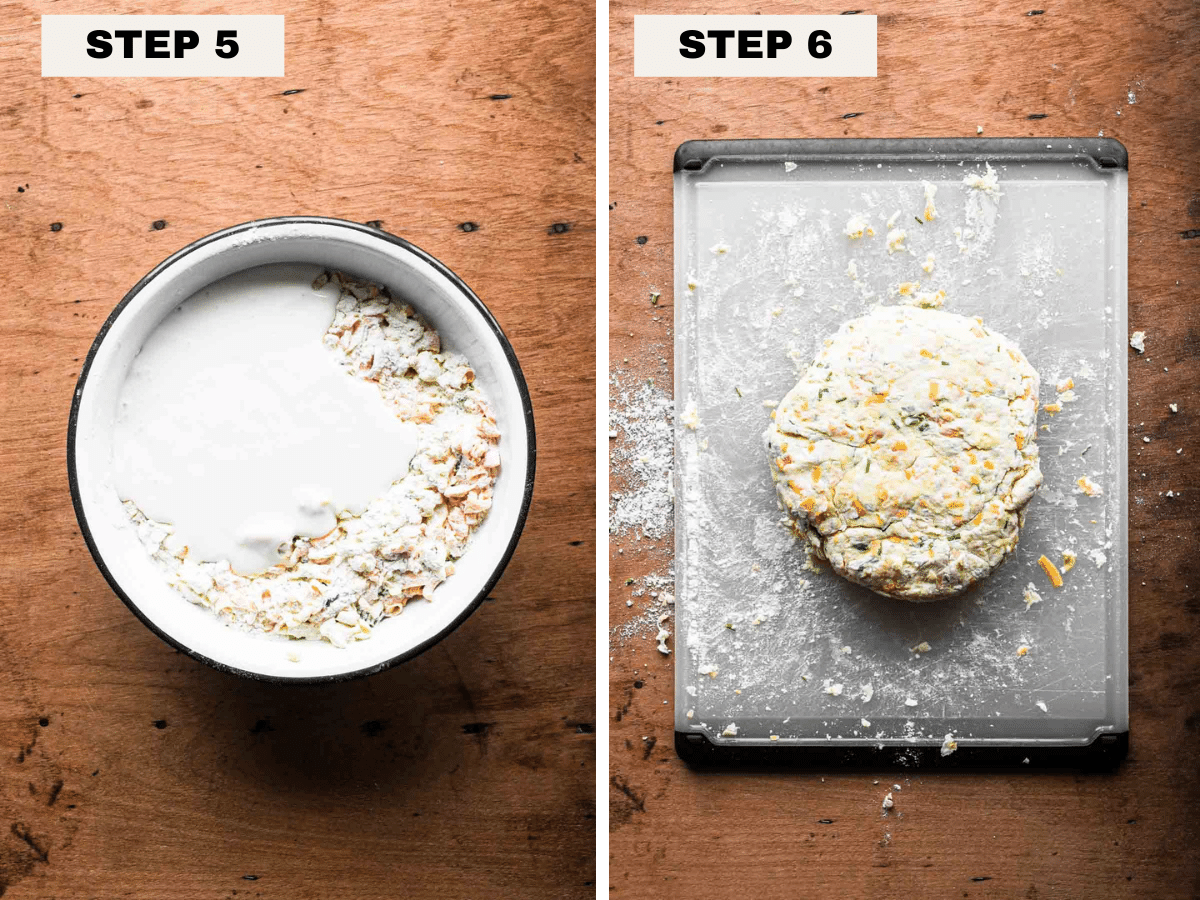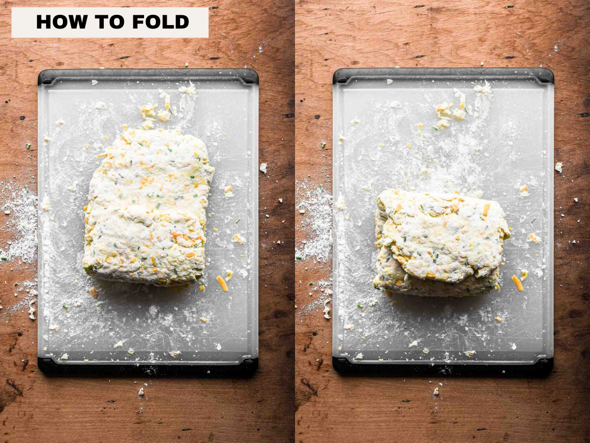 The key to a great easy cheddar biscuit is to not overwork the dough, so make sure to keep that in mind as you go through the steps! Also keep your butter and buttermilk in the fridge until right before you use them.