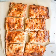 Now I know I mentioned above that this is crazy simple, but after reading through that, you feel me, right? Cheesy pan pizza with spicy hot honey for days please!