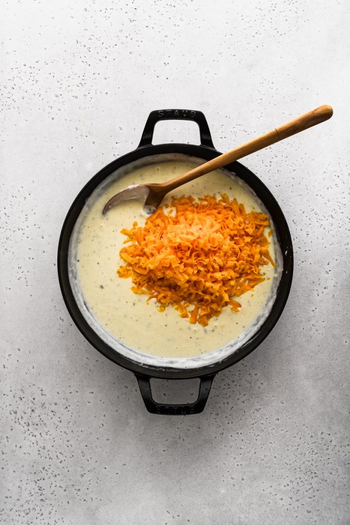 - Sharp cheddar: Sharp cheddar just has delicious flavor. Try to get it from a block and grate it yourself if you can, makes sure the sauce will be extra creamy!
