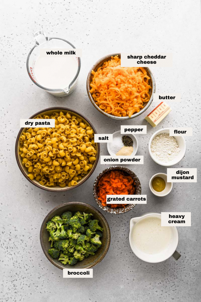 Below are all the key ingredients in making the Copycat Panera Broccoli Cheddar Mac and Cheese as absolutely close to the real thing as possible - and it's vegetarian!