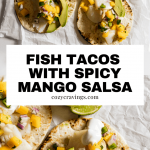 These fish tacos with jalapeño mango salsa are an absolute pop of delicious, fresh flavors. Tender fish paired with the spicy sweet salsa combo is simply perfect. Drizzled with a super easy lime crema to top it all off.