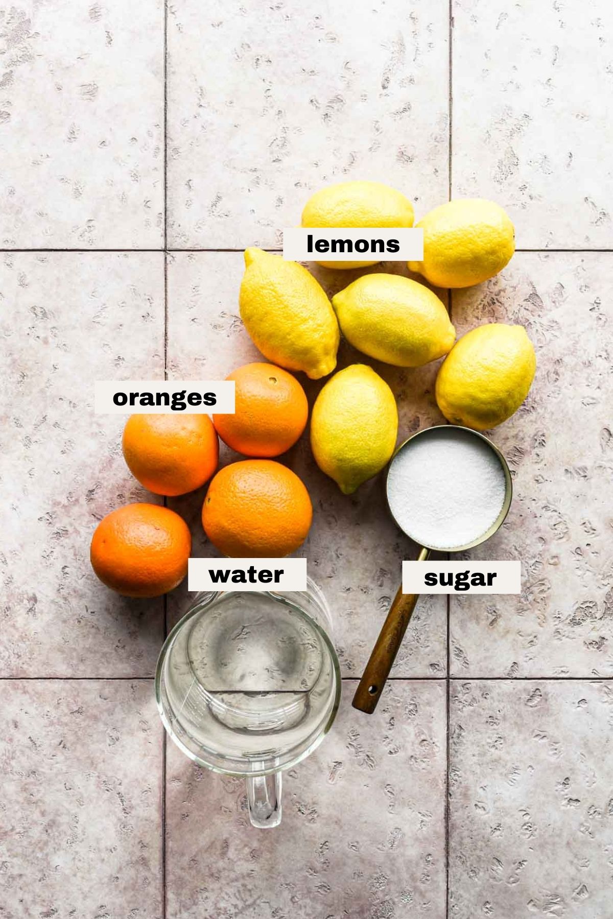- Granulated sugar: sugar gets combined with water to make a simple syrup to sweeten up the orange lemonade a little bit.