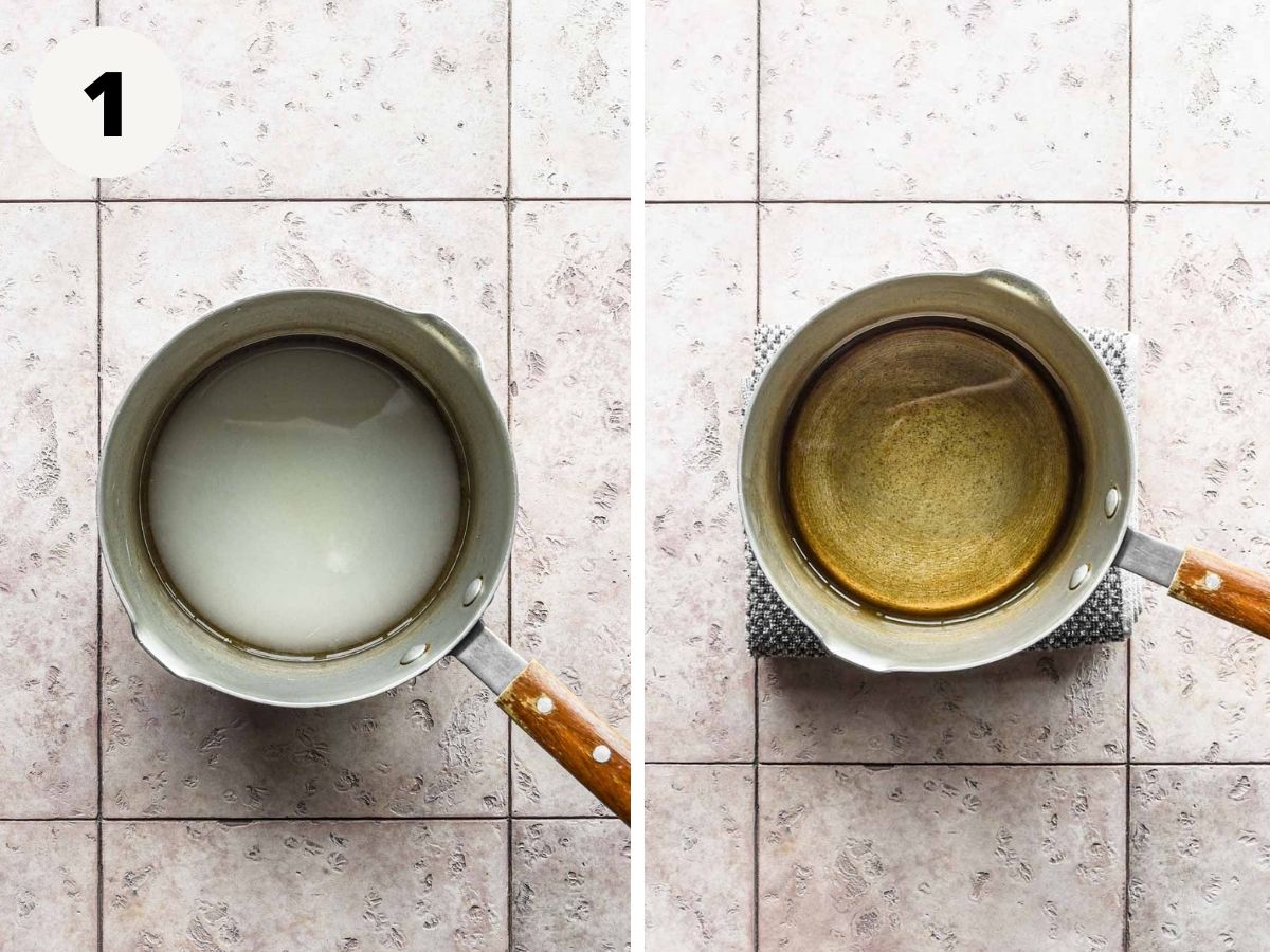 - Heat sugar and water until the water is dissolved to make the simple syrup.