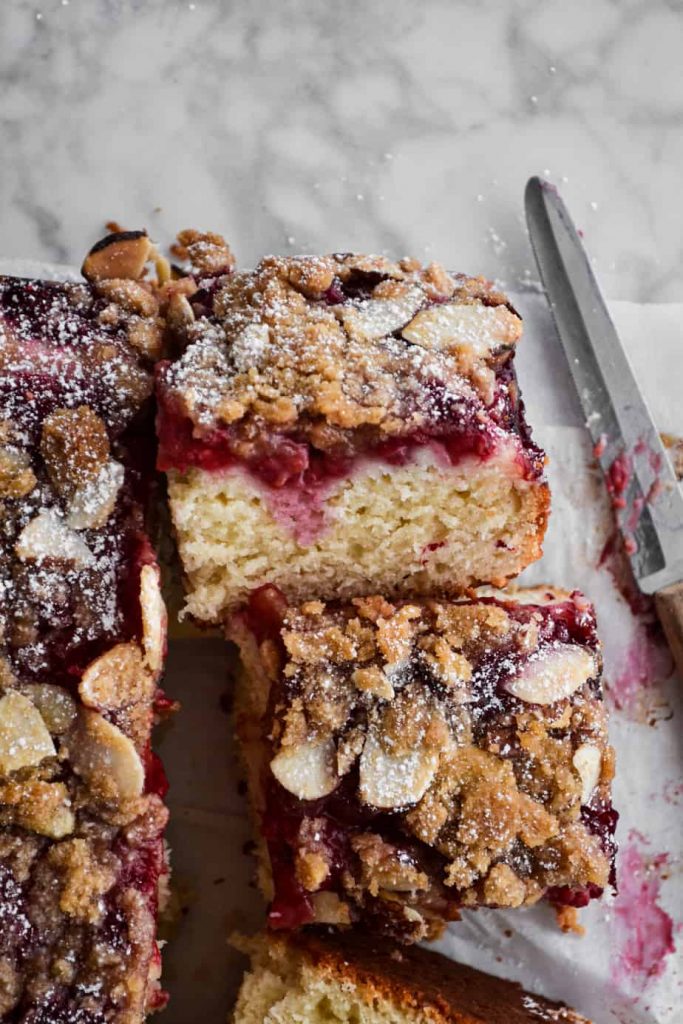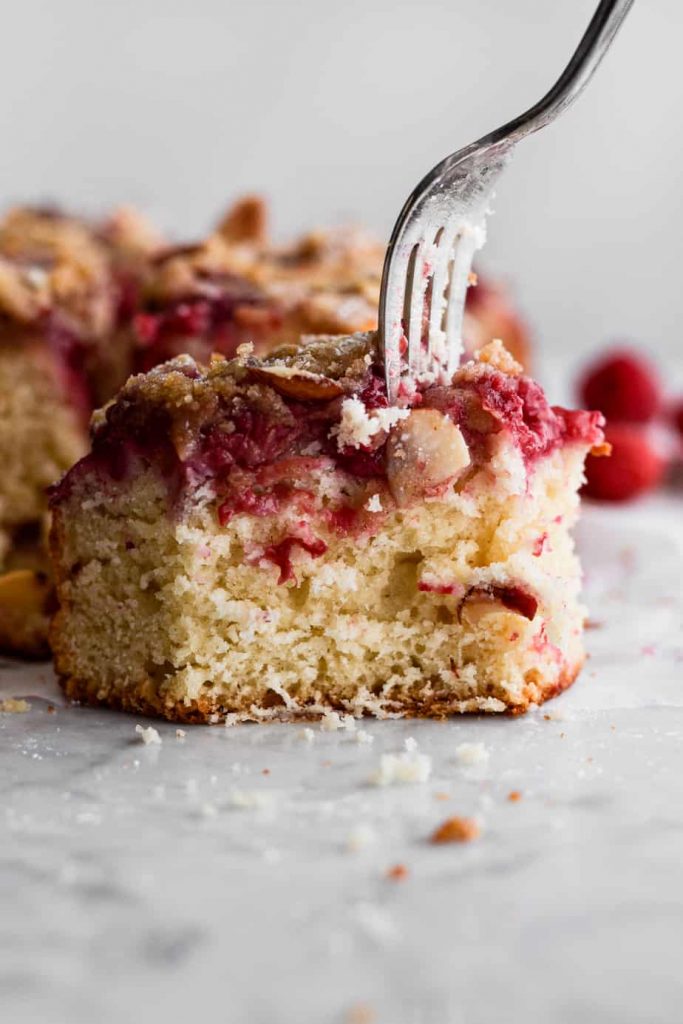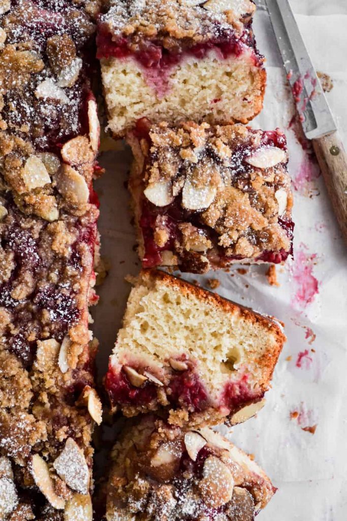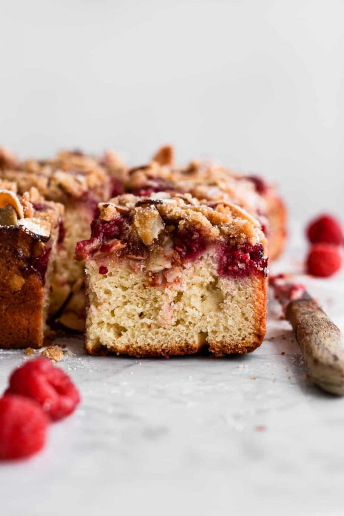 - Almond extract: Raspberry and almond pair deliciously. This crumb cake is topped with almonds, but also using almond extract in the cake itself really brings that flavor home.
