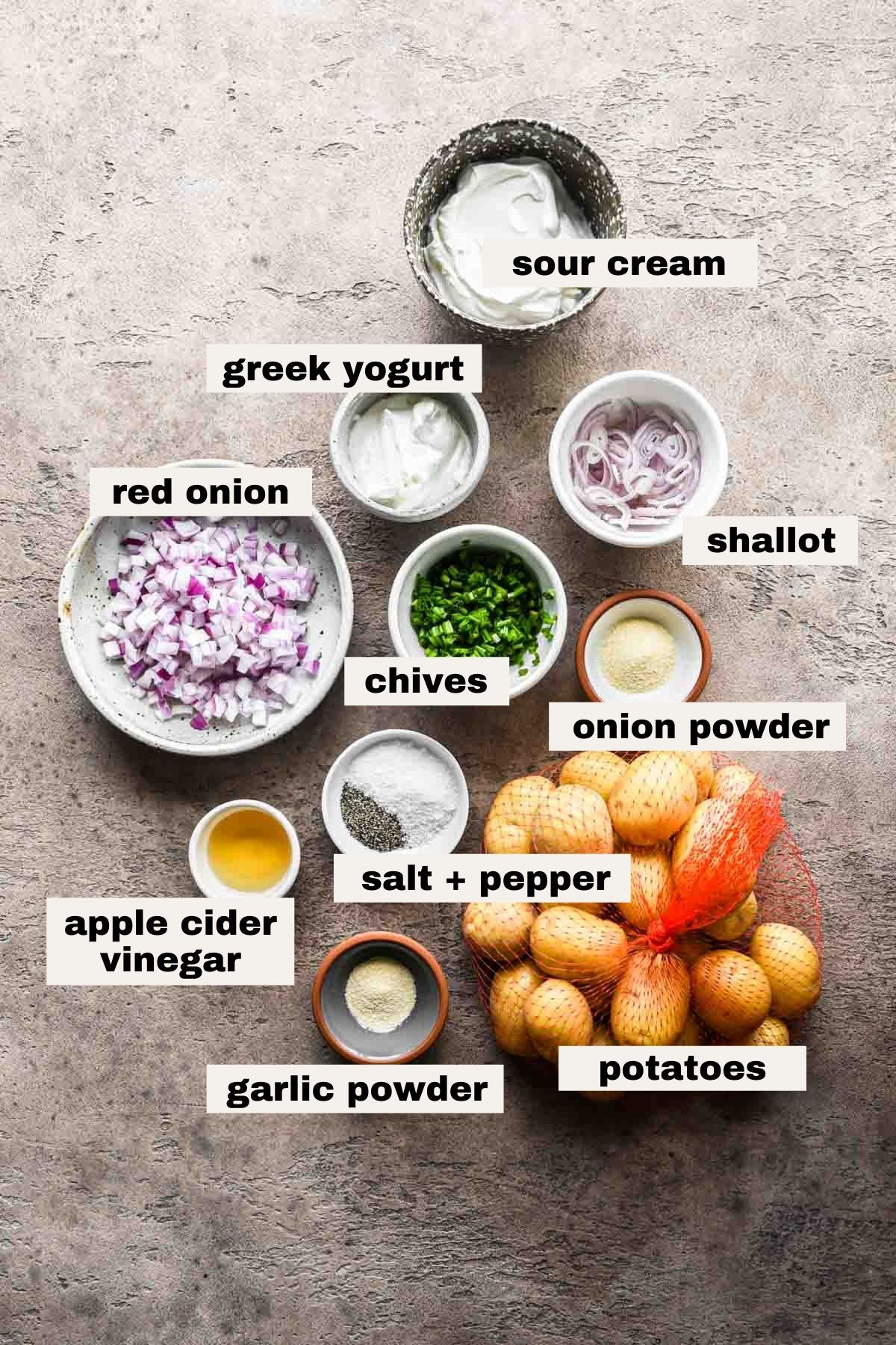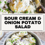 This Sour Cream and Onion Potato Salad is for all the chip lovers out there (myself included). Tender gold baby potatoes covered in a creamy, tangy, oniony, mixture made with sour cream and greek yogurt that's perfectly reminiscent of the crunchy potato chip.