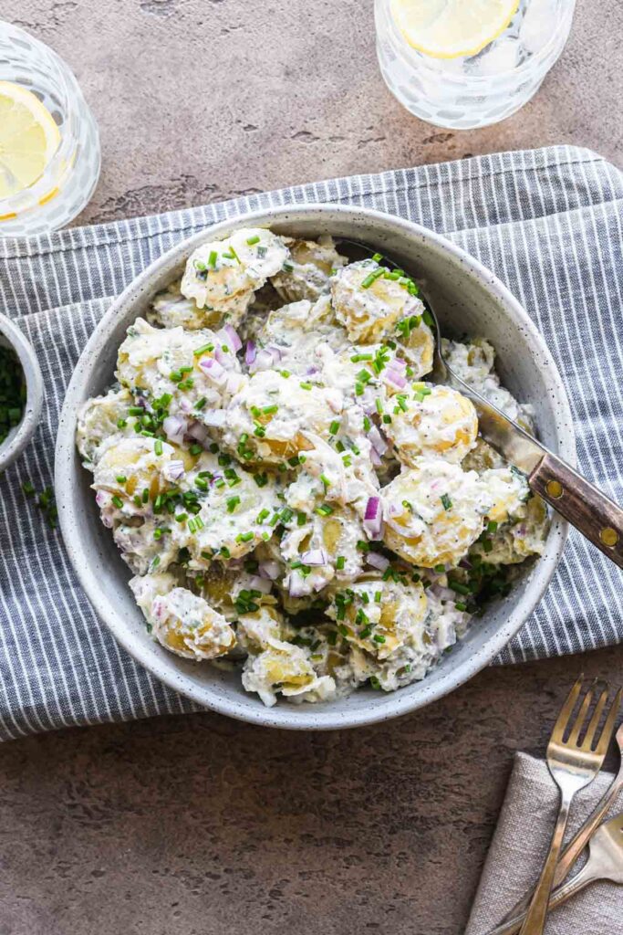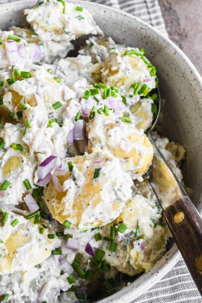 - If you have time and like a chilled potato salad, letting this sit in the fridge for a bit before you serve (or even overnight!) really helps the flavors meld together.