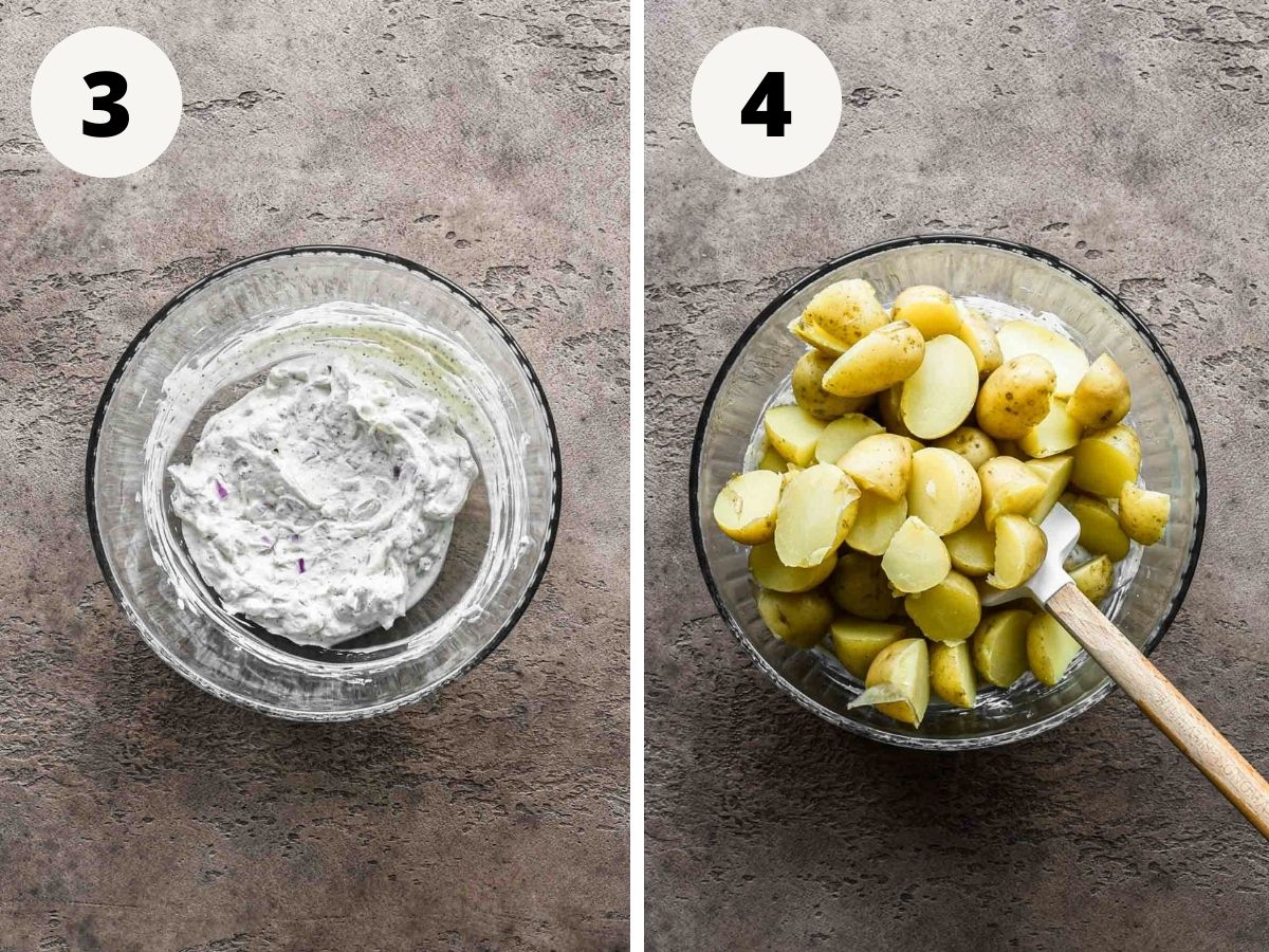 - Add the potatoes to the bowl with the sauce mixture and mix to combine.