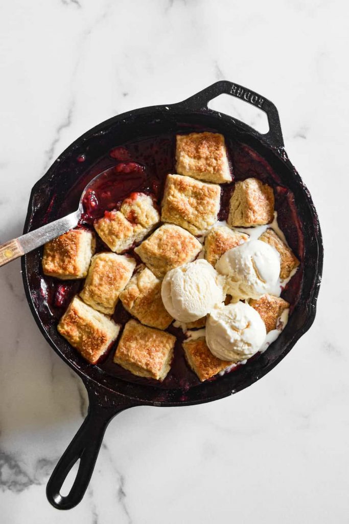 Strawberry and Raspberry Cardamom Biscuit Cobbler