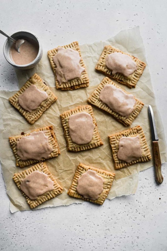 - Step 6: Finish with cinnamon icing: combine the powdered sugar, milk, cinnamon, and salt in a bowl using a whisk or a fork until smooth. When the Pop Tarts come out of the oven, let them cool for at least 15 minutes, then drizzle with the icing.